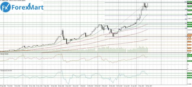 Торговый инструмент биткоин/доллар США торгуется в области максимумов, двигаясь по направлению к цели на 1800. Биткоин возобновил движение в рамках восходящего тренда после коррекции до области Фибоначчи на уровне 1600, сформировав паттерн «доджи» под 1700 на дневном графике. Быки снова нашли опору в виде SMA(50) на H1 и H4. Скорее всего, в ближайшее время увидим попытку обновить максимумы, поскольку те, кто покупал на 1600 явно рассчитывают на 2000. Новостной фон благоприятен для дальнейшего усиления криптовалюты против доллара США.